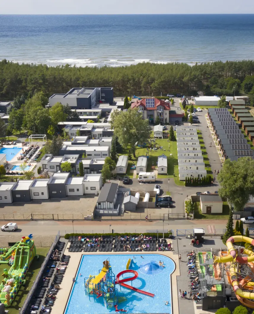 The variety of attractions offered to our guests as well as the unforgettable atmosphere make your stay at Holiday Golden Resort fully relaxing at the Polish seaside. We are a facility that has been famous for the best animations in Poland for 12 years. We offer the first water playground in Poland with a multimedia slide and recreational swimming pools with paddling pools for children. We have 94 Dutch houses of various standards, 57 rooms in bungalows, 16 hotel rooms in eight two-family houses and 12 rooms in a guesthouse.