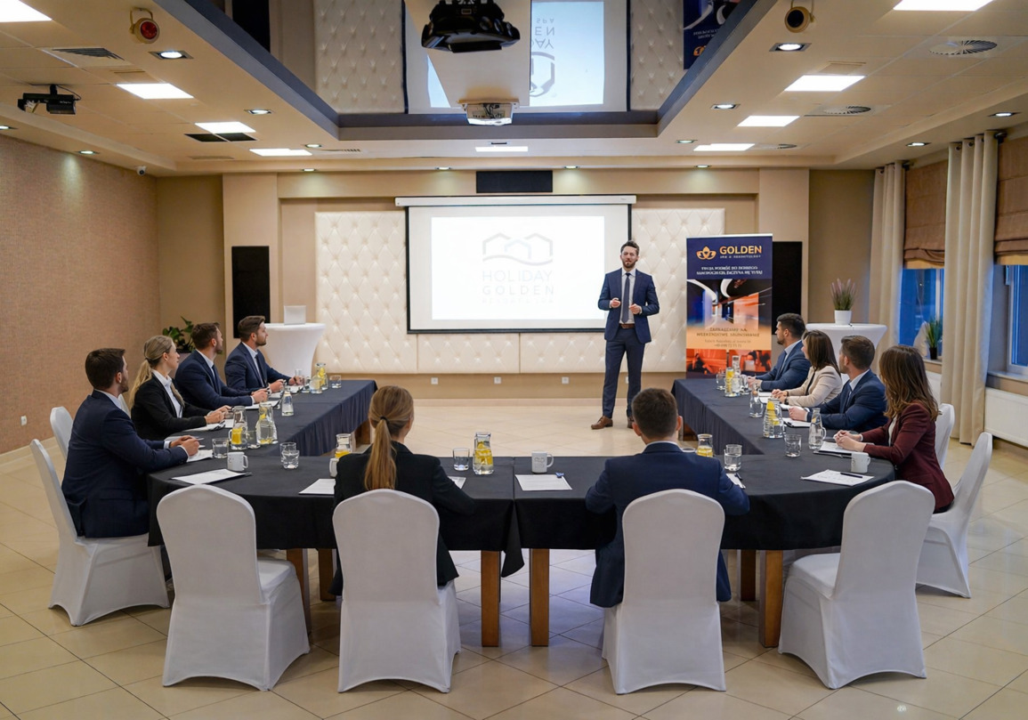 Holiday Golden Resort to doskonały wybór na organizację konferencji, szkoleń i spotkań biznesowych. Zapewniamy nocleg jak i pełne wyżywienie w ramach organizowanych wydarzeń. Każdej organizowanej konferencji czy szkoleniu towarzyszy dedykowany opiekun, który dba o sprawny przebieg wydarzenia, od przygotowania sal, po realizację indywidualnych potrzeb. Resort mieści się zaledwie kilka kroków od malowniczej plaży. Po intensywnych spotkaniach uczestnicy mogą odetchnąć morskim powietrzem i zrelaksować się w spokojnym otoczeniu natury.